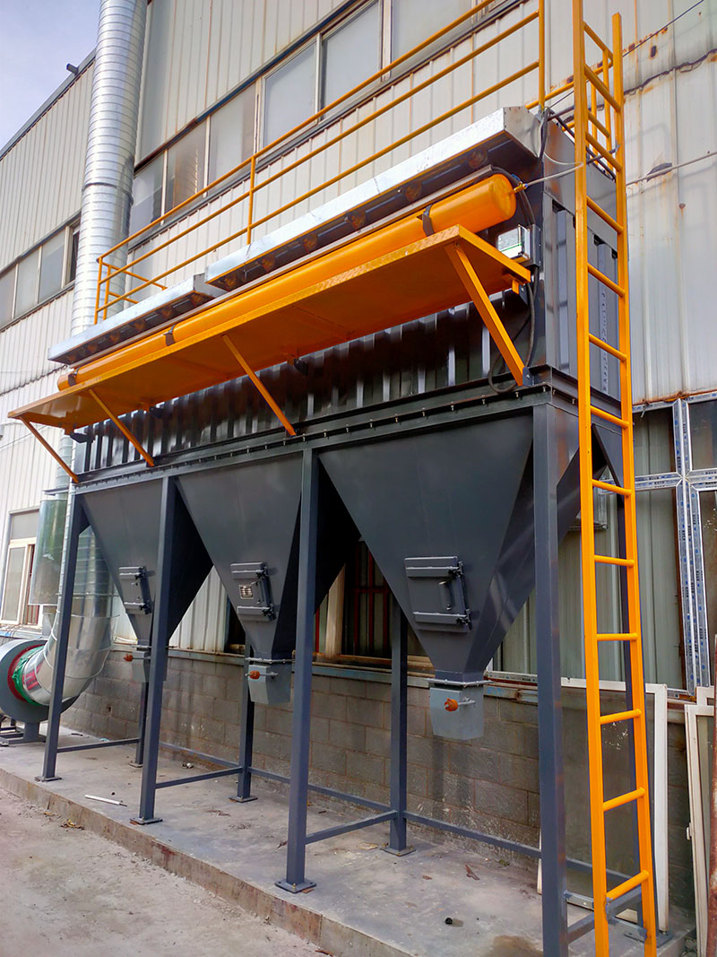 通過對濾筒表面灰塵周期性清理,使設(shè)備運行阻力相對穩(wěn)定,是保證除塵系統(tǒng)正常工作的重要環(huán)節(jié)。沉降及清理的灰塵集聚于灰斗內(nèi),由手動排灰閥排出。